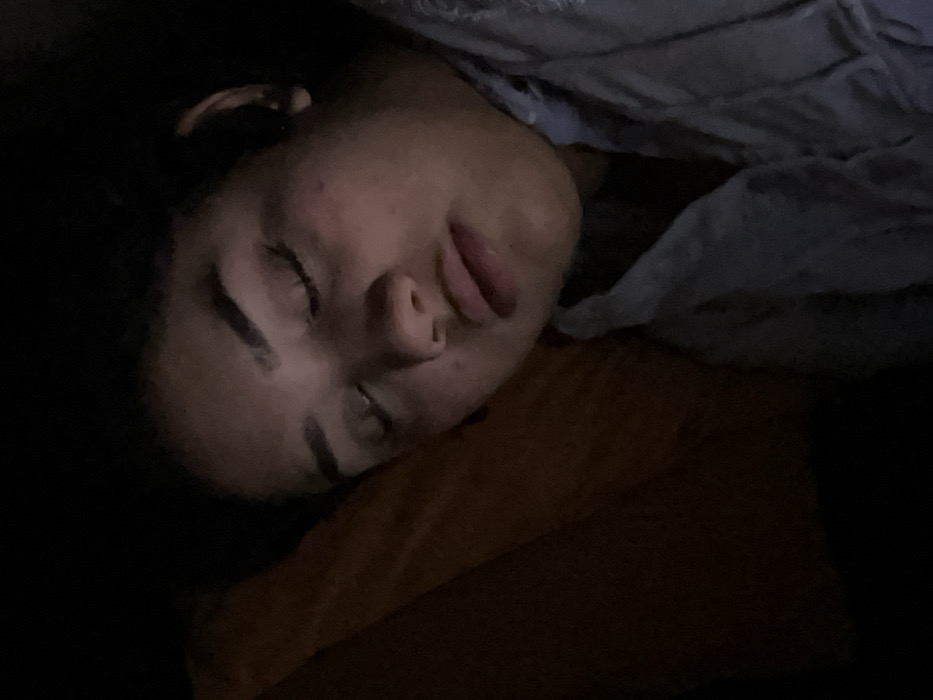 - "A person is sleeping, lying on their side on an orange pillow with a grey blanket partially covering their face" by FM-PwtkB2, licensed under CC BY 4.0
