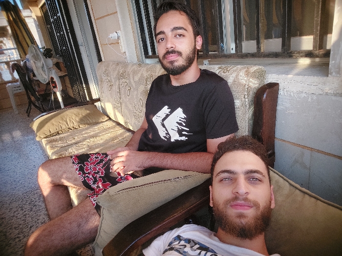 - "Two male subjects are depicted in a semi-outdoor residential setting, likely a balcony or patio, in Ain az-Zarqa, Syria" by FM-XRmlh1, licensed under CC BY 4.0
