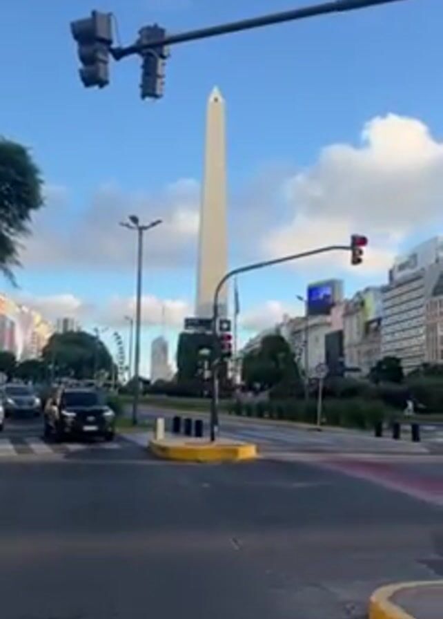 The video captures a street view in Buenos Aires, Argentina, showcasing the iconic Obelisco