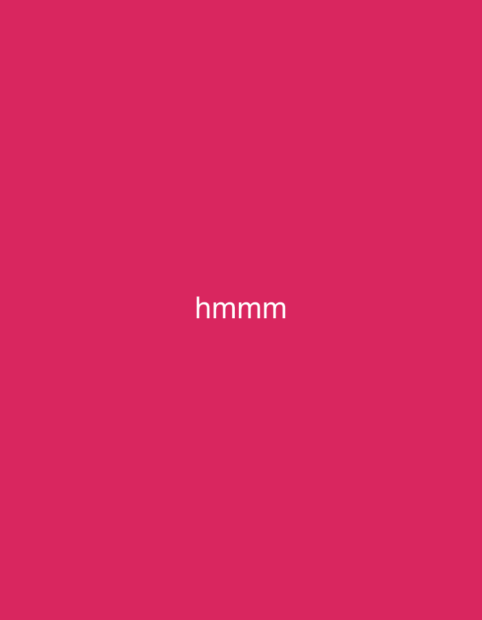 The image displays a solid, uniform magenta background. Centered horizontally and vertically on this background is the word "hmmm" rendered in white, sans-serif lowercase letters. No people, subjects, or objects are present. No actions or interactions are depicted. The environment is entirely abstract, consisting solely of this colored field. There are no visual cues or contextual information within the image to indicate a specific geographic location, including the city of Rudina, Slovakia.