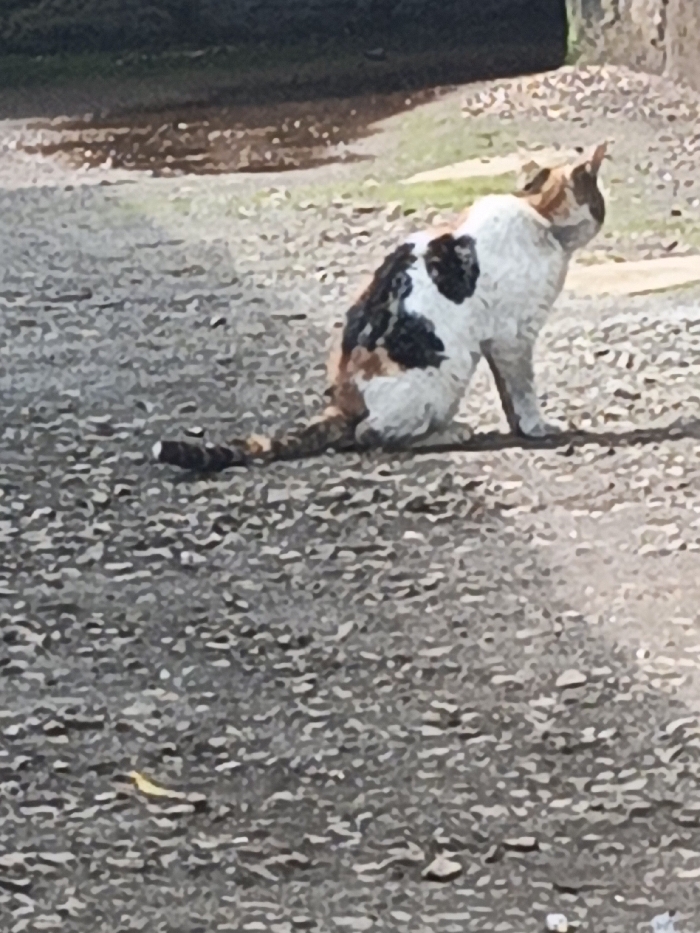 - "A calico cat is observed sitting on an unpaved, gravelly surface in Ndeiya, Kenya" by FM-OBAqH2, licensed under CC BY 4.0