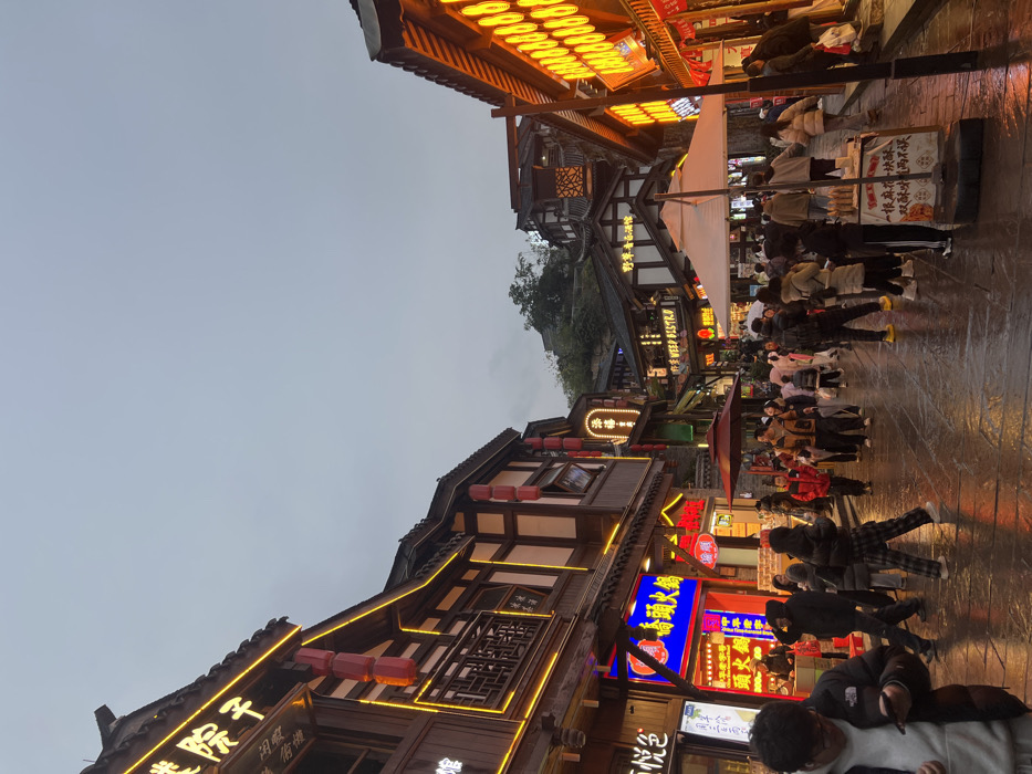 - "The image captures a bustling pedestrian street within Ciqikou Ancient Town, Shapingba District, Chongqing, China, during dusk or early evening under an overcast sky" by FM-KHzZx1, licensed under CC BY 4.0