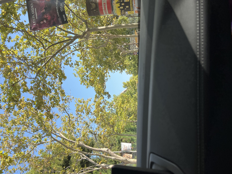 - "The image depicts a bright daylight scene from the interior of a vehicle, looking out through the windshield onto a tree-lined street in Barcelona, Spain, specifically near Parc del Fòrum in the Sant Martí district" by FM-K76IW2, licensed under CC BY 4.0
