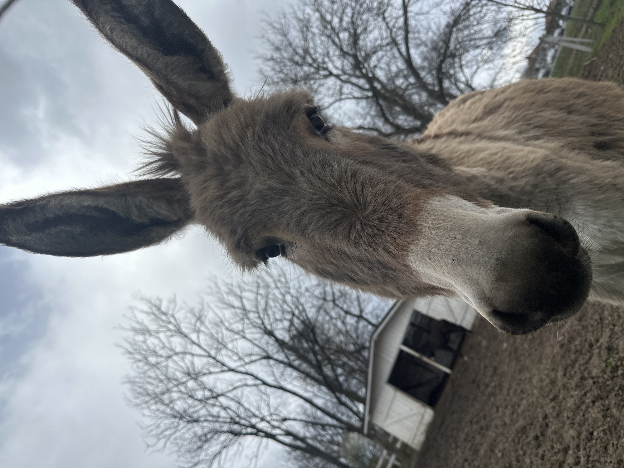 - "A donkey's head and upper body are viewed from a low angle against a backdrop of gray sky and bare-branched trees" by FM-HetxJ3, licensed under CC BY 4.0