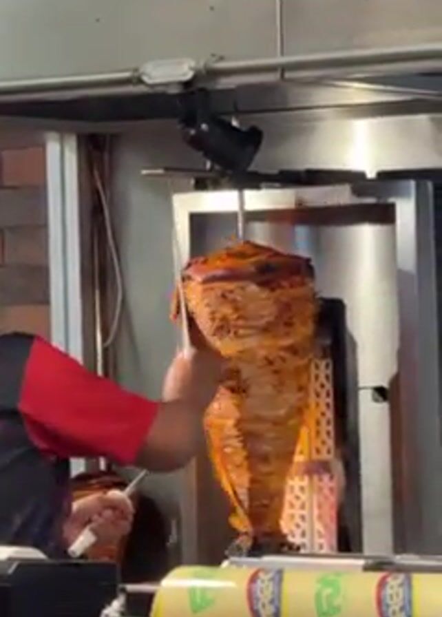 - "person in a red shirt cutting meat from a vertical rotisserie" by FM-avfjN2, licensed under CC BY 4.0
