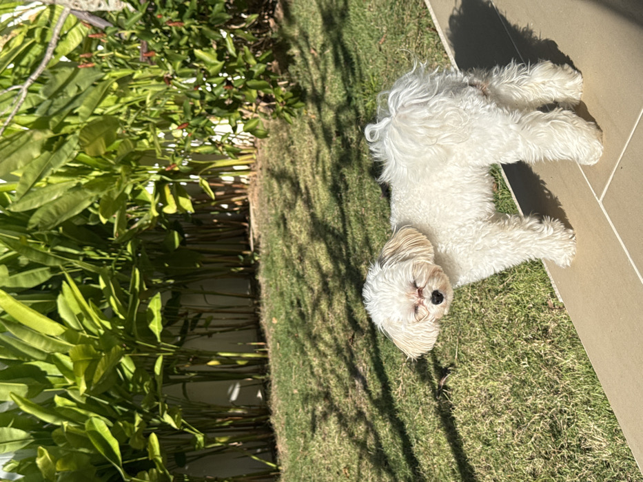 - "A small, white, fluffy dog sleeps peacefully on a lawn, its eyes closed" by FM-f8sTG2, licensed under CC BY 4.0