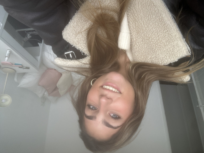 A young female, appearing to be in her late teens or early twenties, is captured in a selfie