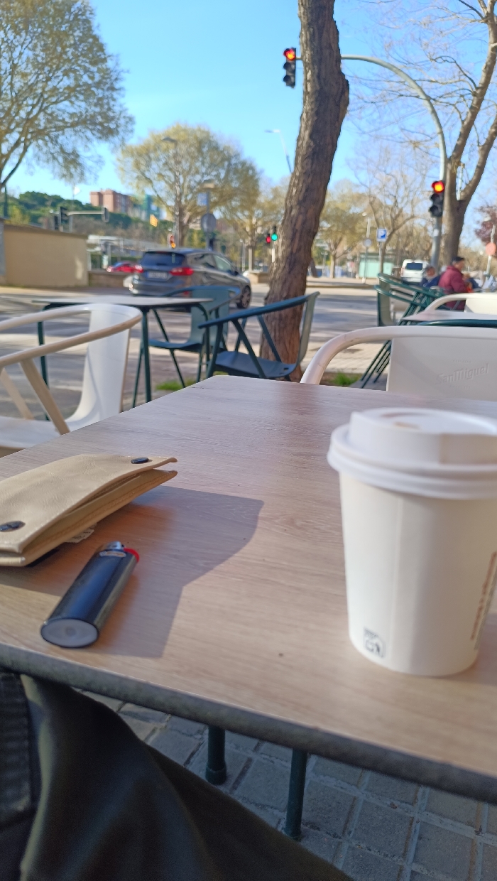 - "This image depicts an outdoor café setting on a sunny day in Sabadell, Spain, viewed from the perspective of someone seated at a table" by FM-963E53, licensed under CC BY 4.0