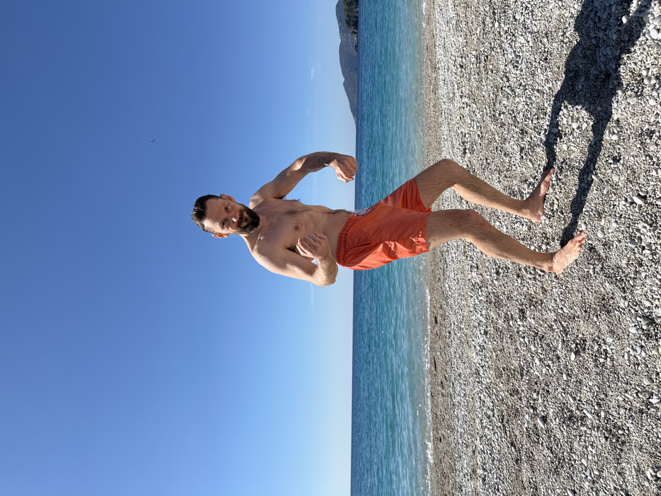 - "An adult male stands on a pebble beach at Oludeniz, Fethiye, Turkey, under a clear blue sky" by FM-FPzVJ3, licensed under CC BY 4.0