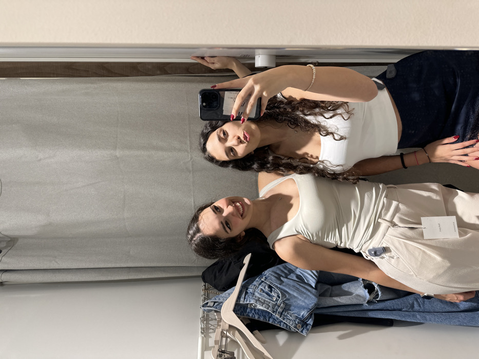 - "Two young women are depicted taking a mirror selfie inside what appears to be a retail store fitting room in Sofia, Bulgaria" by FM-kD0bA3, licensed under CC BY 4.0