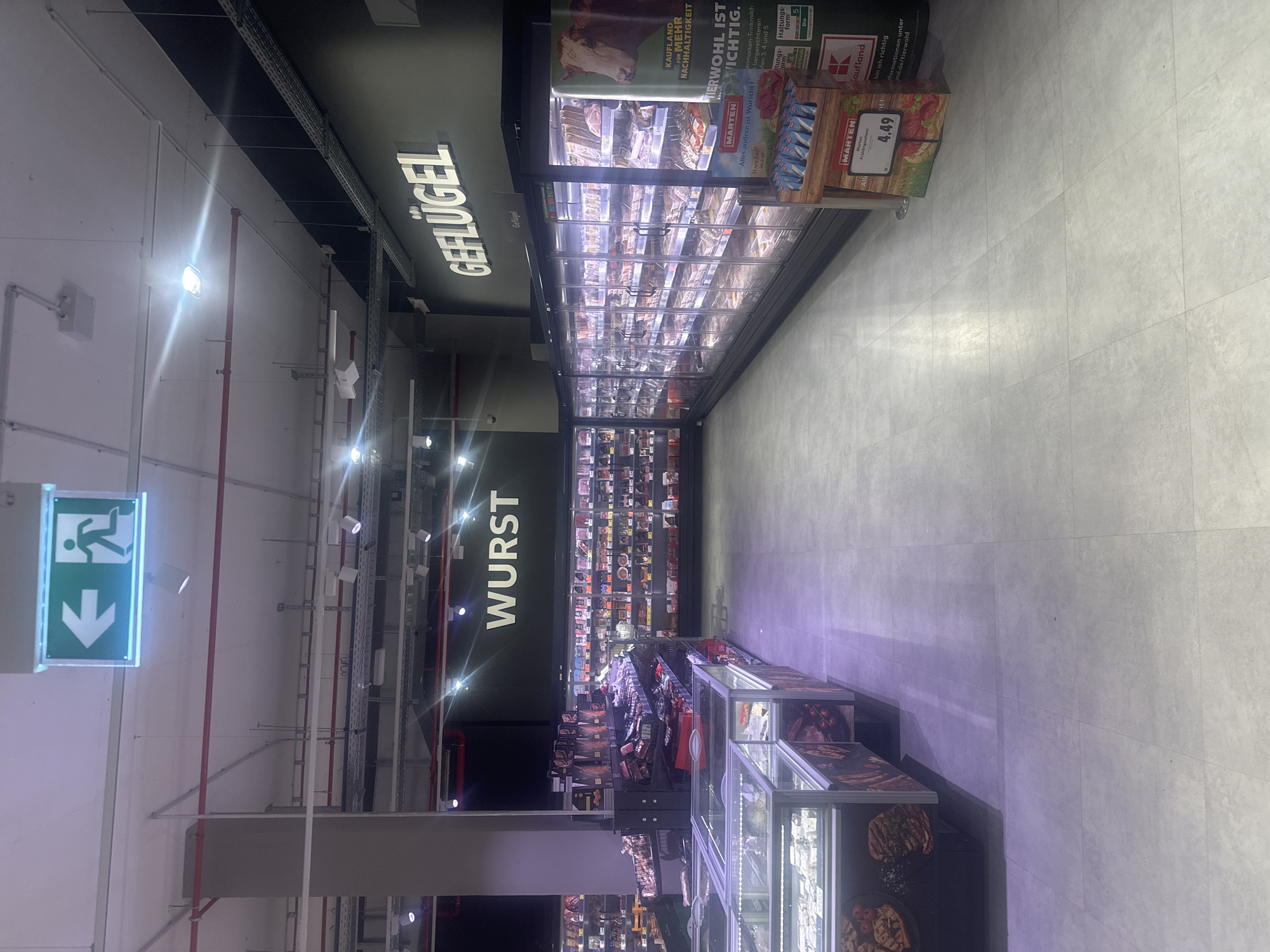 interior of a German supermarket, likely a Kaufland, focusing on the meat and poultry section