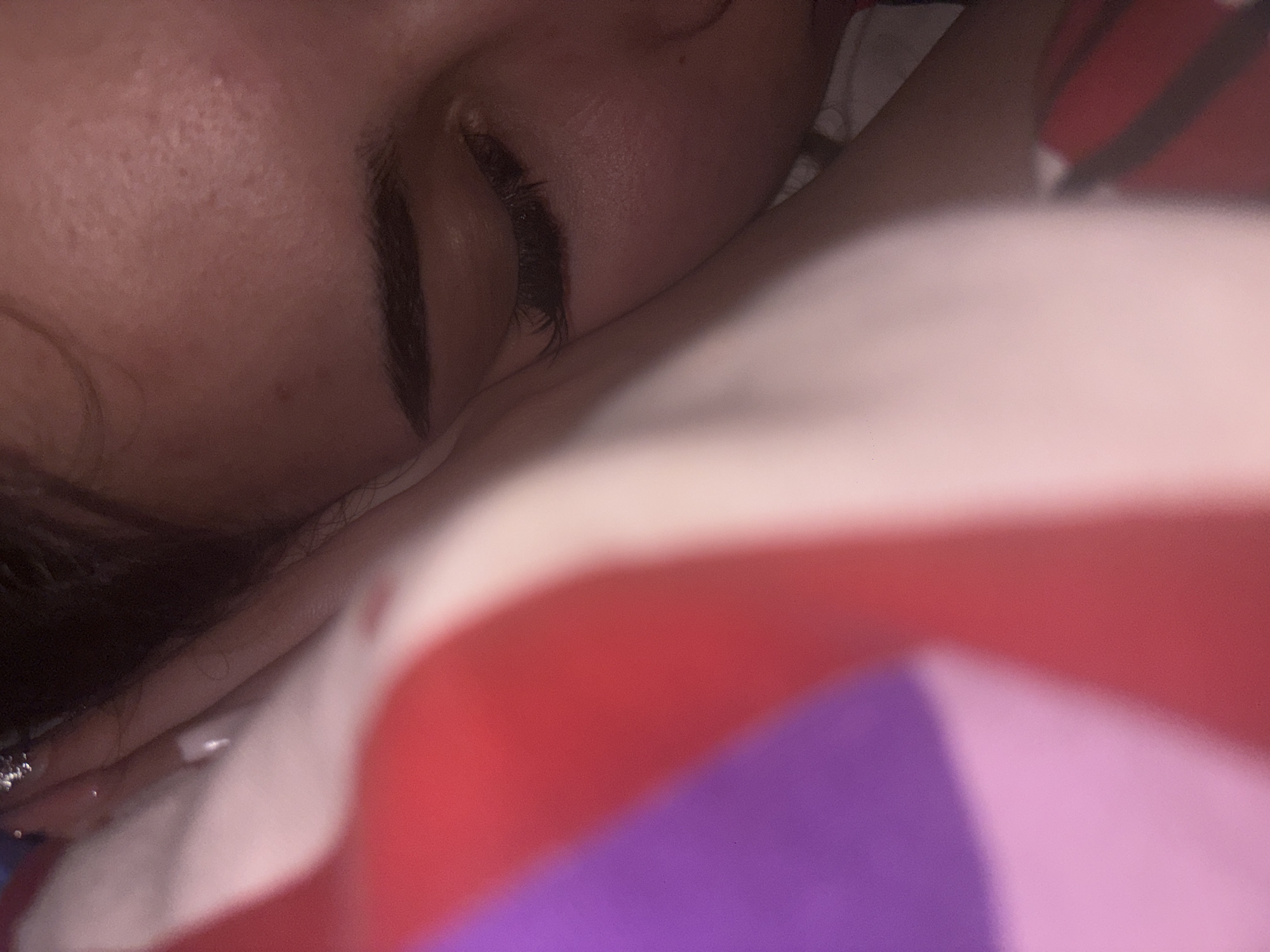 close-up of a person's face, likely a young female, sleeping