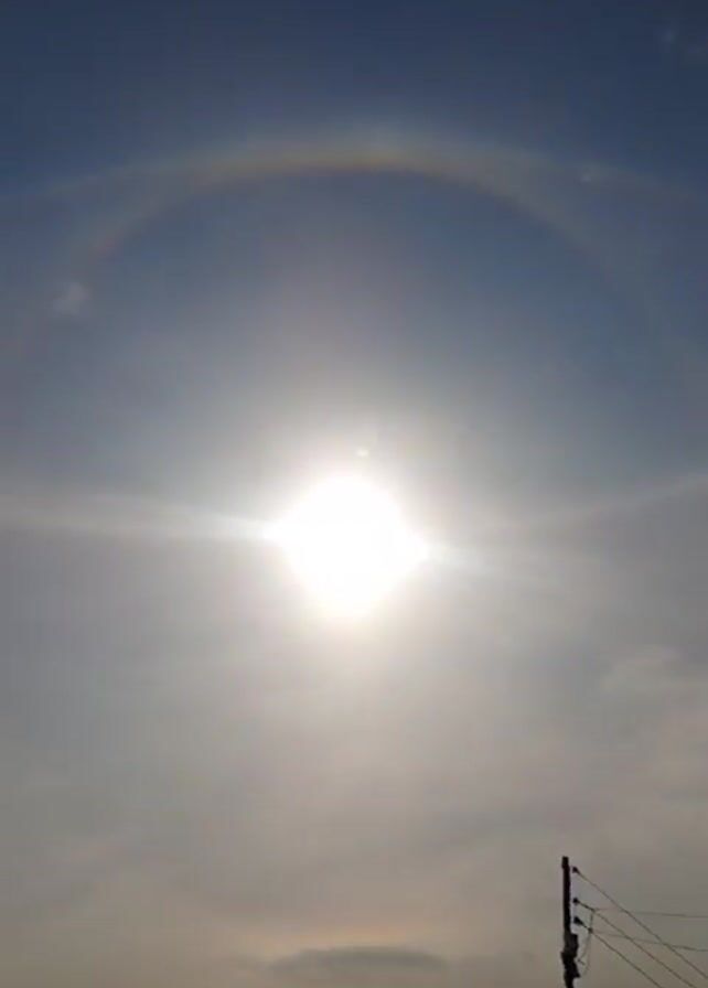 daytime sky with a sun halo, a bright circle or arc of light surrounding the sun