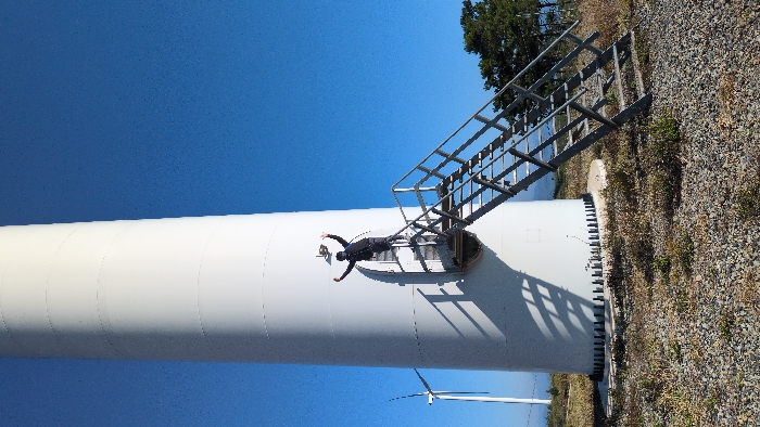 - "An image captured in Trường Thọ, Vietnam, depicts a single individual standing on an external metal staircase leading into the base of a large, white wind turbine" by FM-MreoF3, licensed under CC BY 4.0