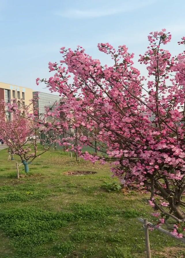 pink flowering tree in a grassy area on a sunny day