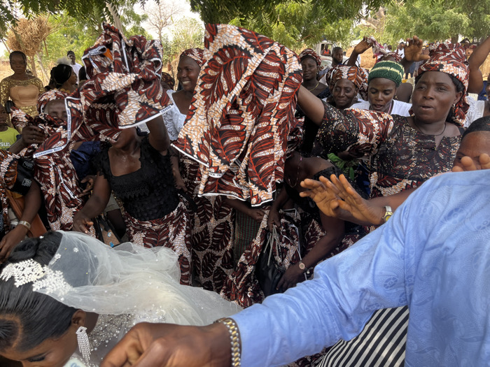 This image depicts an outdoor gathering, likely a wedding event, in Kalong, Nigeria