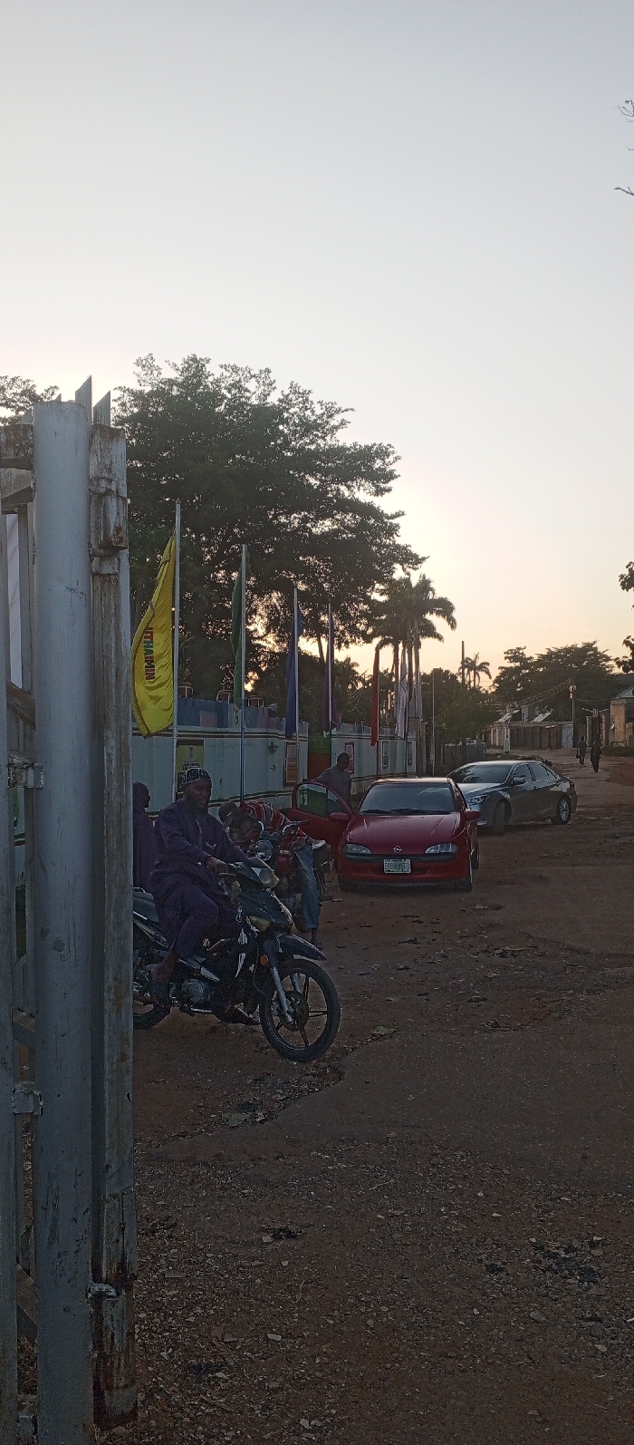 This image depicts an outdoor scene in Unguwar Rimi, Nigeria, under diffused lighting suggesting either early morning or late afternoon