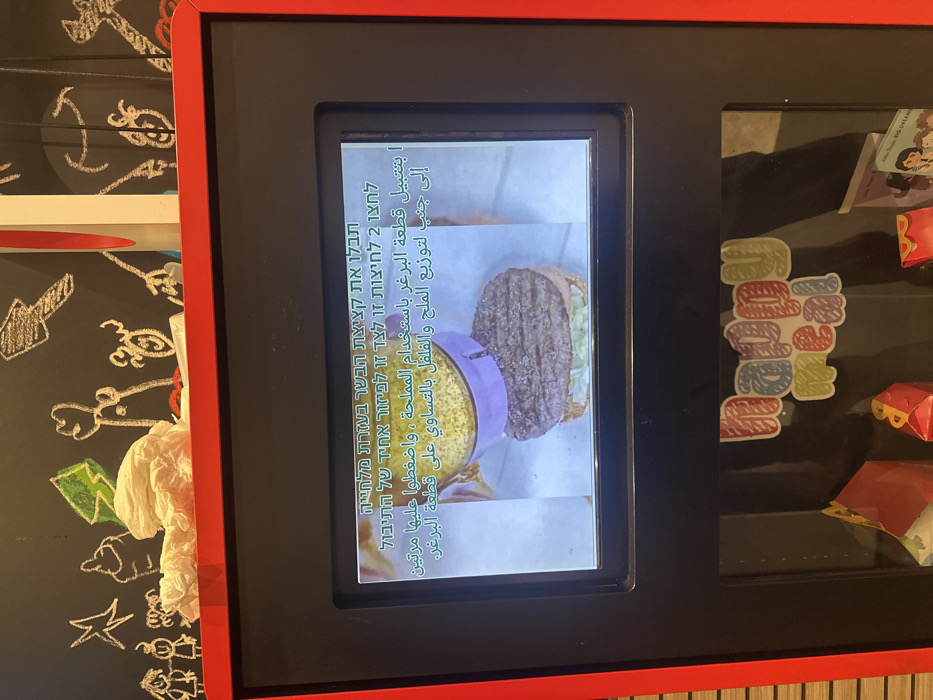 - "The image displays an interior view of a fast-food restaurant, identifiable as being in Tel-Aviv, Israel, due to the prominent Hebrew text on a digital display" by FM-m9oXq2, licensed under CC BY 4.0