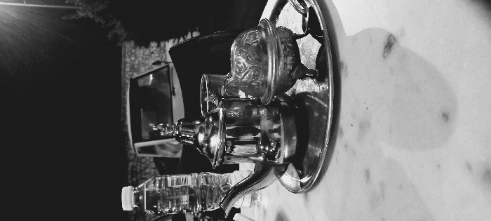 - "A monochrome shot presents a traditional Moroccan tea set" by FM-MM3Sy2, licensed under CC BY 4.0