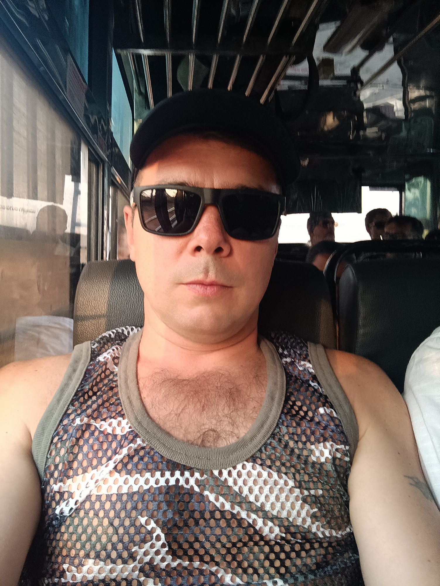 - "An adult male is captured in a self-portrait within a bus interior in Mamillakunta, India" by FM-FmCFz2, licensed under CC BY 4.0
