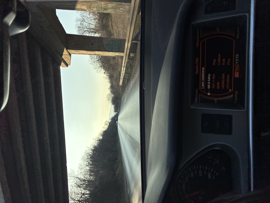 - "The image depicts a scene captured from the interior of a moving vehicle, looking forward through the windshield" by FM-deX4F3, licensed under CC BY 4.0