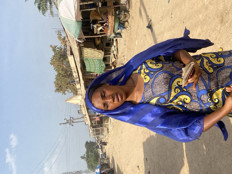 The image displays an outdoor market scene in Nagazi, Nigeria, under clear daylight conditions
