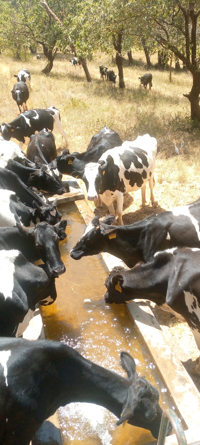 - "A herd of black and white cows gather around a long, concrete water trough, drinking" by FM-IEKbx1, licensed under CC BY 4.0