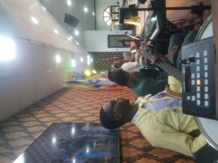 band performing in what appears to be a church or a similar venue in Port Harcourt, Nigeria