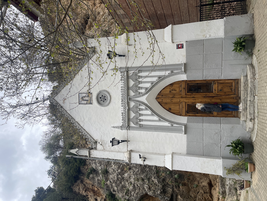 - "A white, Gothic-revival style chapel with a prominent arched wooden double door stands at the base of a rocky, vegetated cliff in Buñol, Spain" by FM-D8nzh1, licensed under CC BY 4.0