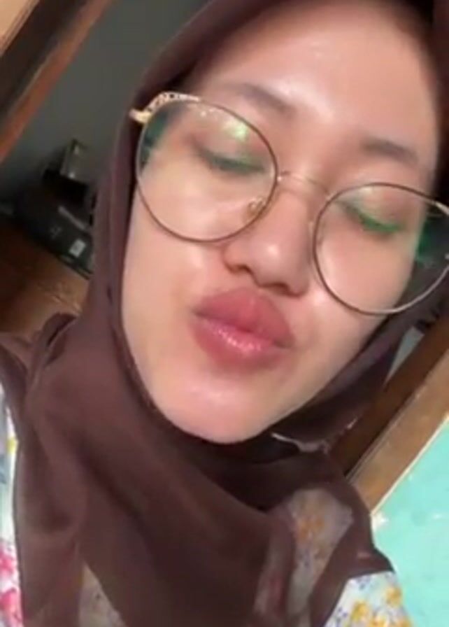 person wearing a brown hijab and round glasses