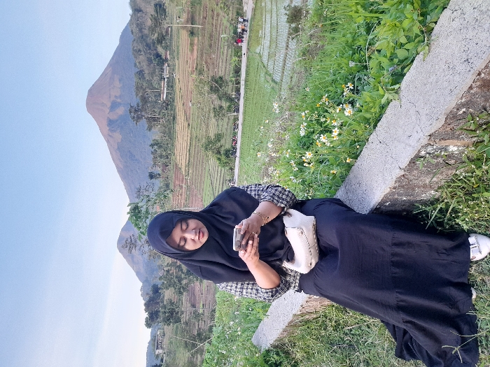 - "A female individual is seated on a low concrete wall in a rural landscape within the Penanggungan region of Indonesia" by FM-8CAHW2, licensed under CC BY 4.0