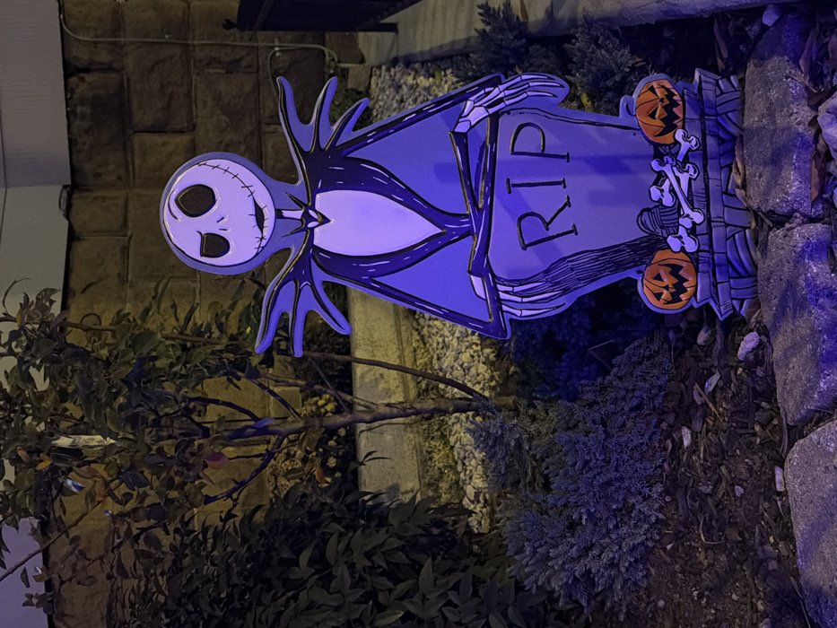 - "A Halloween yard decoration featuring Jack Skellington stands upright in a garden bed in Weehawken, United States" by FM-grnl23, licensed under CC BY 4.0
