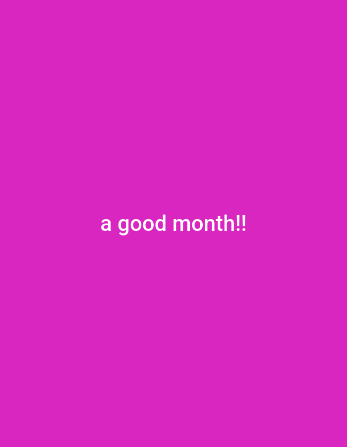 The image displays a solid magenta background. Centered on this background, in white lowercase letters, is the phrase "a good month!!" followed by two exclamation marks. There are no discernible people, subjects, objects, actions, interactions, or environmental details that would indicate a specific location within the city of Guadalupe, Philippines, or any other physical environment. The image is purely textual over a monochromatic field.