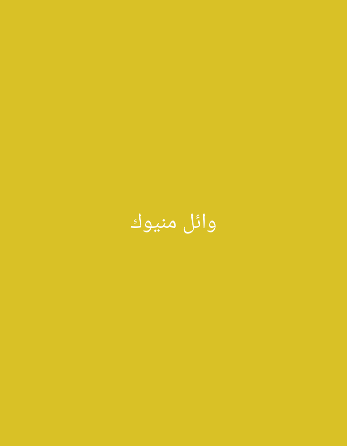 The scene, located in the city of Sarouja Municipality, Syria, consists of a digital graphic or sign featuring a solid, uniform yellow background. Centered on this background is white Arabic text, reading from right to left: "وائل منيوك". The text translates to "Wael manyook," where "Wael" is a male proper name, and "manyook" is a highly vulgar Arabic epithet implying sexual violation or extreme contempt. No other subjects, objects, people, actions, or environmental details are depicted within this image.
