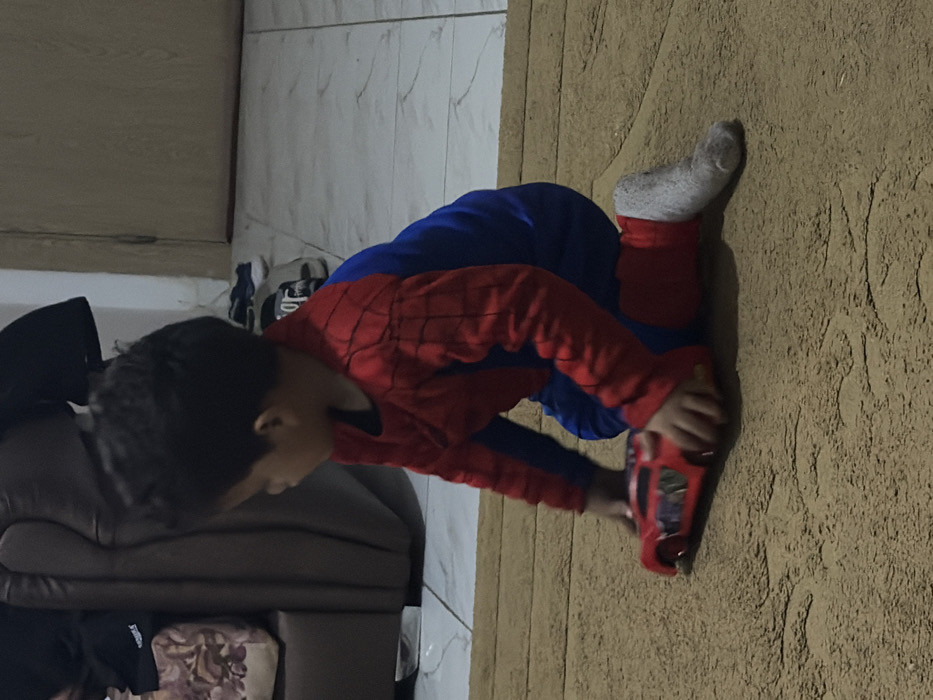 - "A child dressed in a Spider-Man costume plays with a red toy car on a textured brown surface" by FM-dXKAk1, licensed under CC BY 4.0