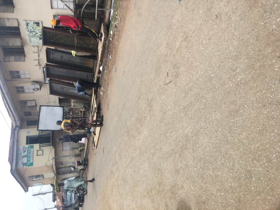 The image captures a street scene in Dadi Riba, Nigeria, under an overcast sky