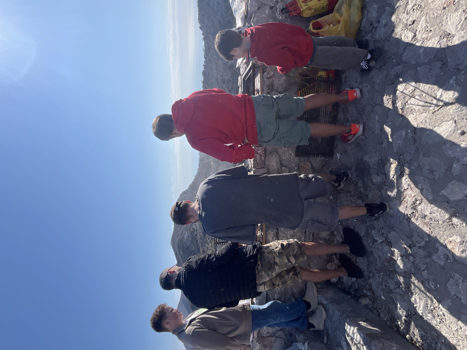 - "The image depicts five males engaged in an outdoor cooking activity on a rocky elevated platform in Čelobrdo, Montenegro, overlooking a mountainous landscape and the Adriatic Sea under a clear blue sky" by FM-rOKEu2, licensed under CC BY 4.0