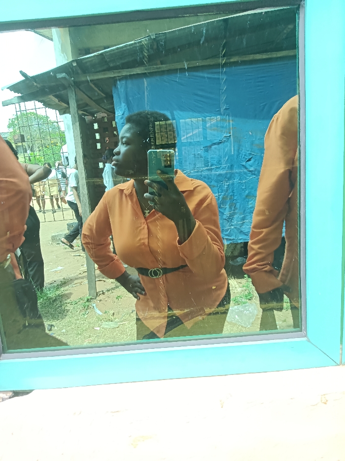 A mirror reflection selfie is depicted, originating from Owerri, Nigeria