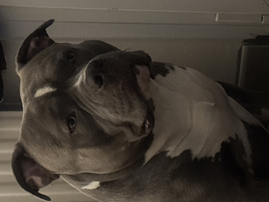 - "The image displays a close-up portrait of a muscular, short-haired dog, consistent with an American Bully breed type" by FM-rEJ0w2, licensed under CC BY 4.0