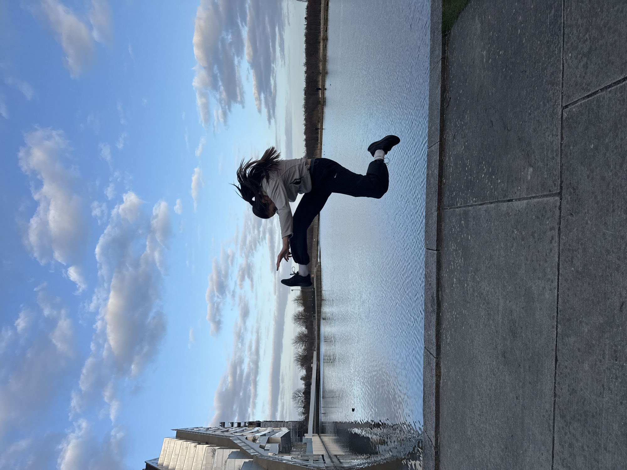- "A female individual is captured mid-air in a dynamic jump or kick over a concrete waterfront in Ørestad, Copenhagen, Denmark" by FM-FtAbd2, licensed under CC BY 4.0