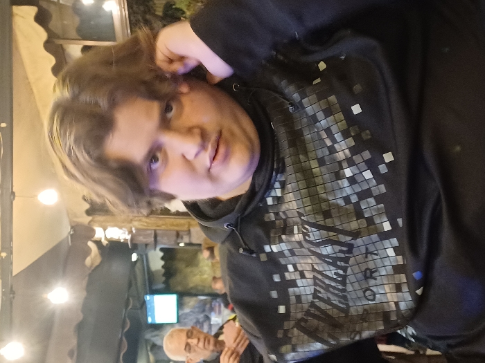 - "A light-skinned individual with shoulder-length brown hair wears a black hooded sweatshirt with a pixelated square design" by FM-hmmxi2, licensed under CC BY 4.0