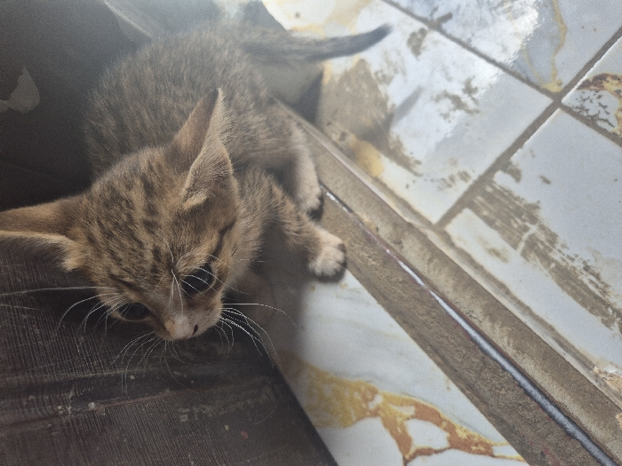 - "The image depicts a small, brown and grey tabby kitten positioned in what appears to be an indoor setting in Yelwa, Nigeria" by FM-hgDz52, licensed under CC BY 4.0