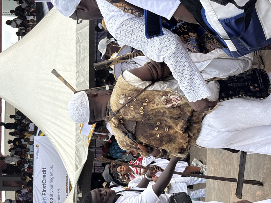 The image displays an outdoor cultural event in Lagos, Nigeria