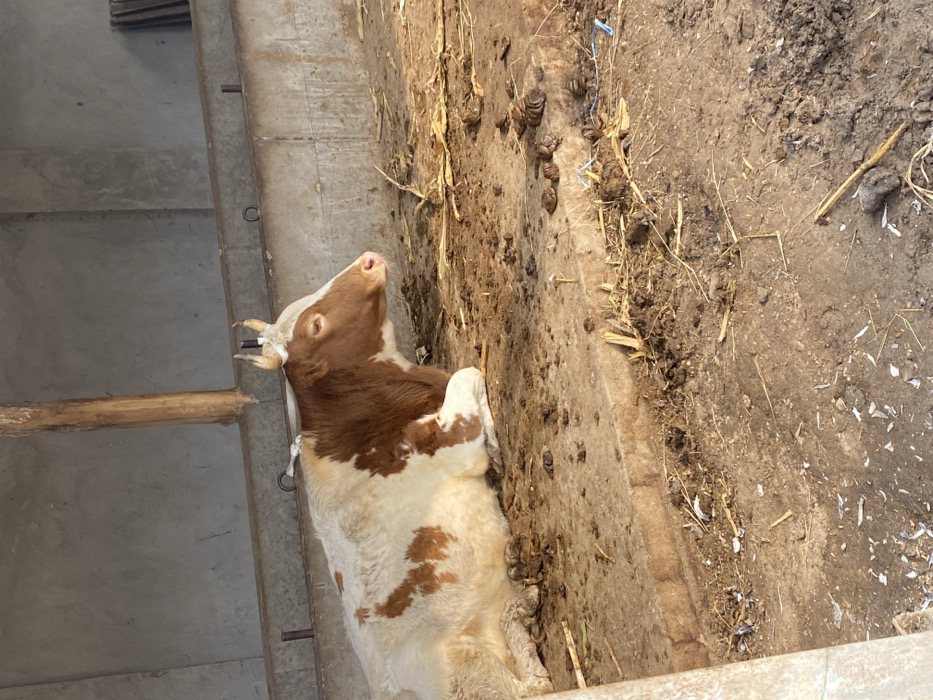 - "A brown and white calf stands in a concrete stall, facing upwards" by FM-fKVxi2, licensed under CC BY 4.0
