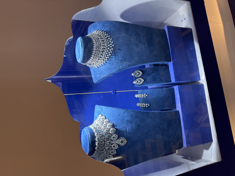 The image displays a high-end jewelry showroom in Jaipur, India