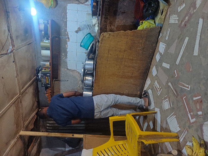 The image depicts an indoor domestic or commercial kitchen space in Jos, Nigeria