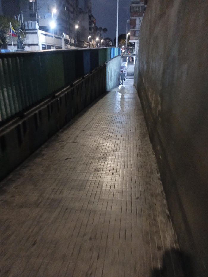 - "The image displays a nighttime perspective of a wet, tiled pedestrian walkway within an urban setting in Caracas, Venezuela" by FM-aSXAC2, licensed under CC BY 4.0