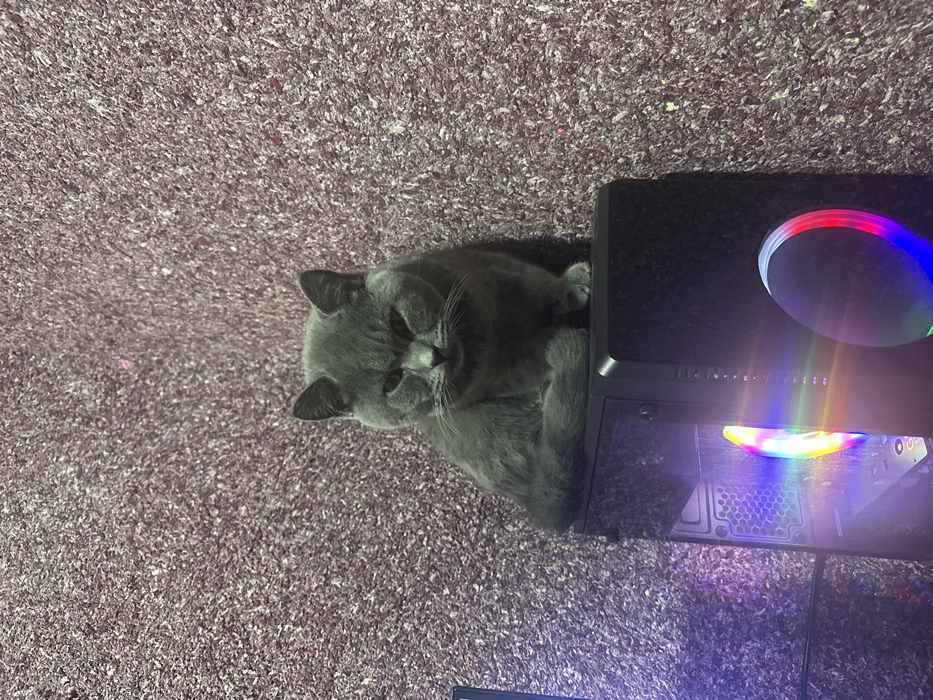 - "A gray cat lies curled up partially inside a black computer case" by FM-uAaZs1, licensed under CC BY 4.0