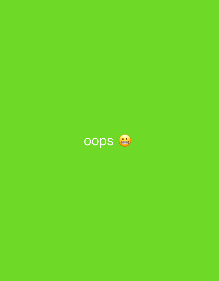 A solid green background displays the word "oops" in white, accompanied by a grimacing face emoji with gritted teeth and open eyes