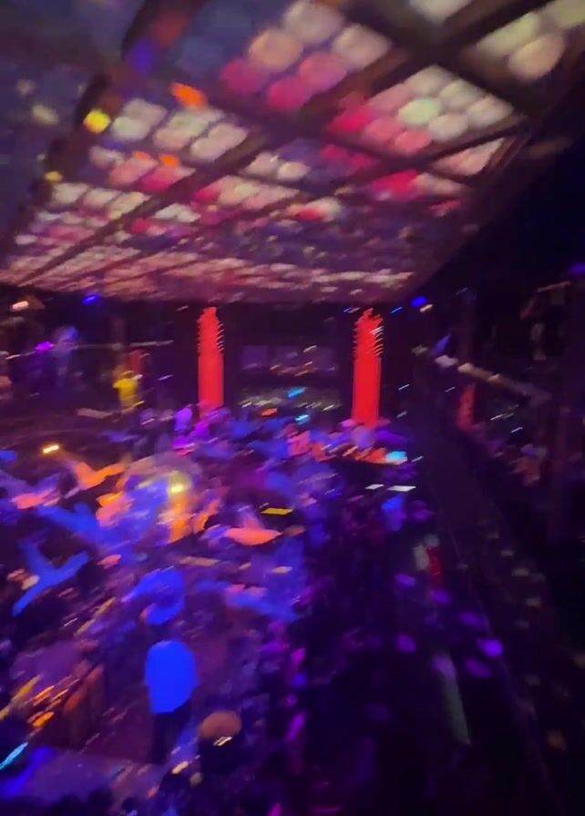 - "The video opens with a blurry, wide overhead shot of a crowded nightclub with colorful lighting and a disco ball" by FM-iCfSu2, licensed under CC BY 4.0
